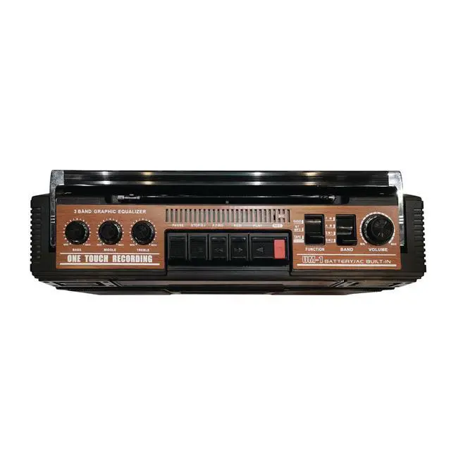 ^^ --: Enjoy a cassette player, built-in speaker, 3-band EQ modes, and 3.5 mm earphone jack for your private dance sessions, Power it up at home or take it on the road with batteries (not included). Rock on!