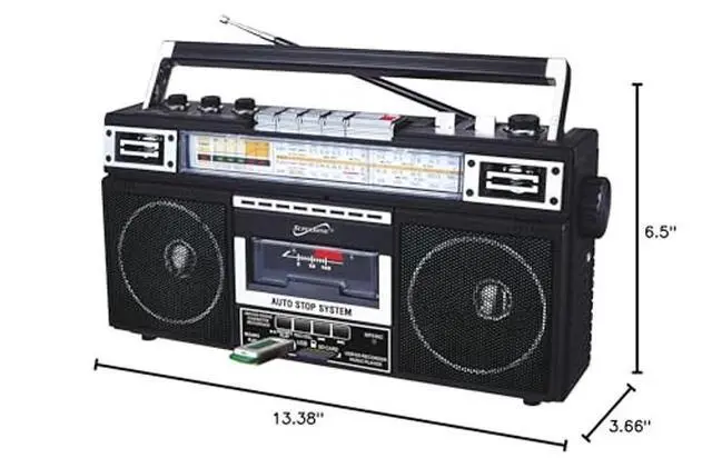 The boom box also offers the ability to convert cherished analog music into digital files, making it a breeze to relive your favorite tunes from cassette tapes on your own USB or SD (TM) Cards. With both a built-in speaker and a 3.5 -mm stereo earphone jack, you can enjoy music your way, while its versatile power options, from AC to DC, make it suitable for any setting. Embrace the best of both worlds with this boom box that harmoniously blends old-school charm with cutting-edge technology.