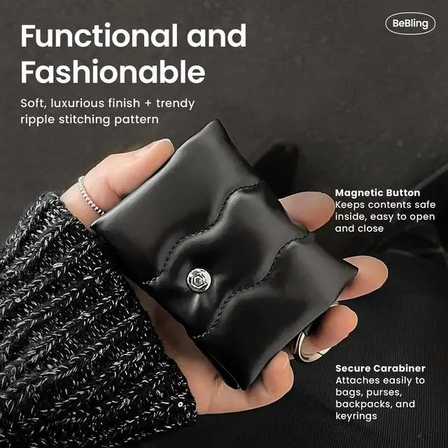 ^^ Secure Magnetic Button Closure & Convenient Carabiner Hook The magnetic button allows smooth, easy opening and closing, keeping your items secure while the included carabiner lets you effortlessly attach the pouch to your bag, belt loop, or keys for on-the-go convenience. ^^ Trendy, Durable Gift for Glam Tech Lovers A perfect gift for women and tech enthusiasts who appreciate fashion-forward accessories that combine durability, style, and everyday practicality.