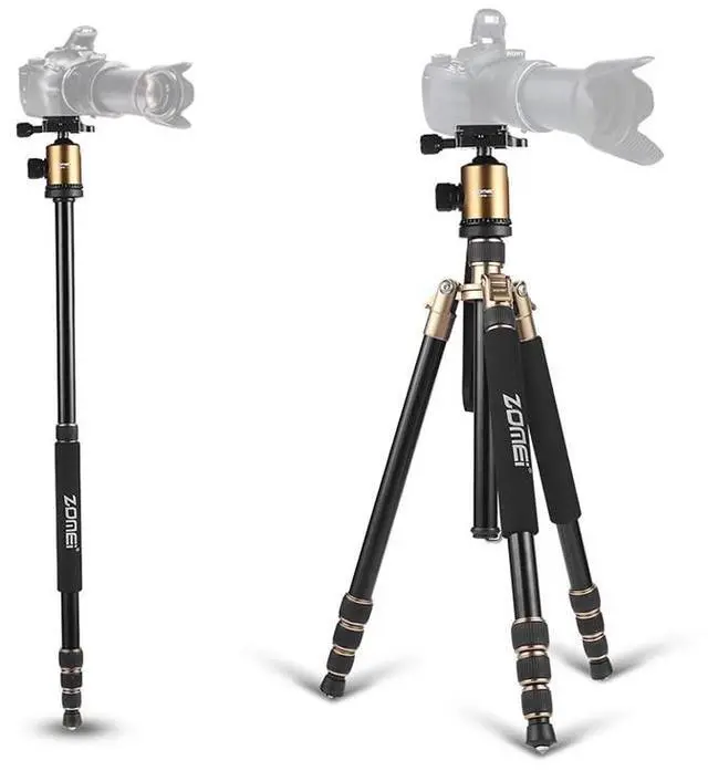 ZOMEI Z818 65 inch Portable Professioional Aluminium Camera Tripod3 Different Leg AnglesThe aluminum alloy legs can be adjusted to 25, 50, and 80-degree angles to enable extreme low angle photography. Compact SizeThe tripod legs can be inverted and folded back 180 degree, giving it a compact size of 18.9", save your space and make it small enough to carry everywhere.