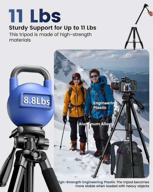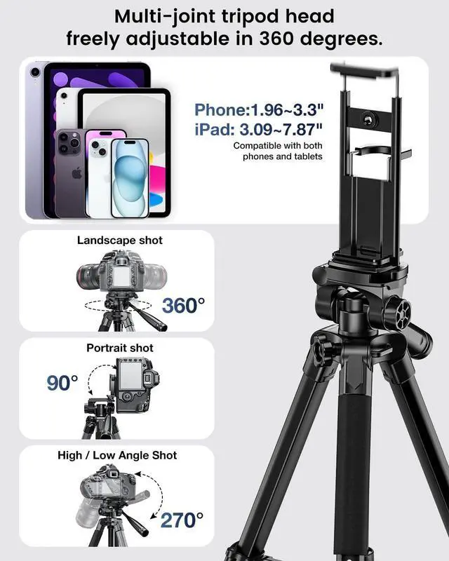 1. This upgraded lightweight tripod uses CNC technology to improve the precision of each component. The joints last 20% longer than similar products, with a lifespan of over 50, 000 uses (more than 5 years). The head rotates smoothly for easy camera adjustments, ensuring no stuttering during the shooting process.