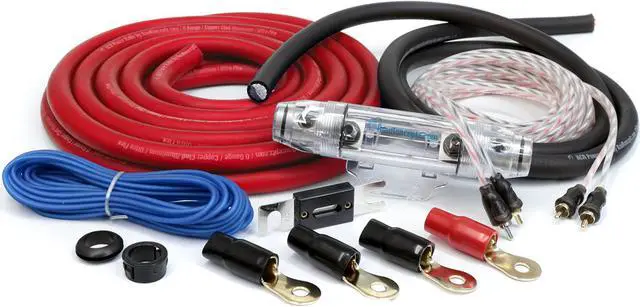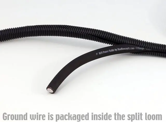 - 17' 1/0 AWG RED KCA Kable (CCA) Power Wire - 5' 1/0 AWG Black KCA Kable (CCA) Ground Wire - Inline ANL fuse holder with 250A fuse - 4 gold plated 1/0 gauge ring terminals -grommets, loom and wire ties KnuKonceptz includes 5 feet of ground cable. Why? So that you can upgrade your stock battery to chassis ground. With cable of this size, upgrading your battery ground should be completed. No other company offers that.