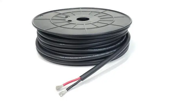Klimate Speaker Cable - 10 Gauge Speaker Wire. Each conductor is composed of 462 strands of the tinned copper for superb durability in high moisture applications. Tinned copper will not oxidize or deteriorate over time like bare copper or CCA. The UV Sun Resistant PVC designates that this cable can be used outdoor in direct contact with ground and exposed to sun. Cable length has been printed and remaining length is indicated directly on the cable (see photo). The inner conductor jackets are color coded red and black to maintain proper polarity throughout your installation.