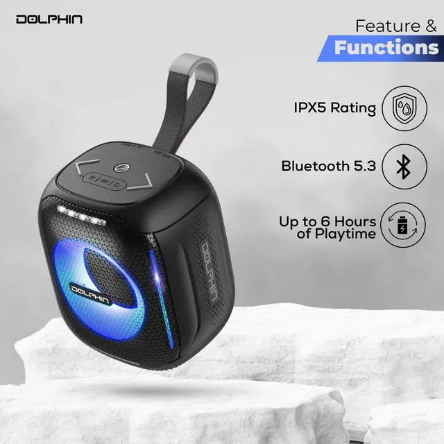 Water Resistant & Durable: With an IPX5 rating, the Dolphin S10 is perfect for outdoor adventures, beach trips, and pool parties.