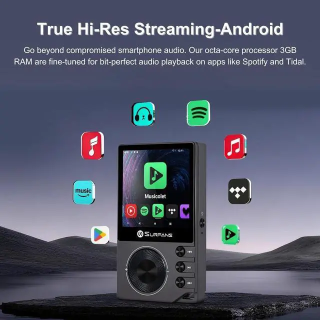 1. [Smooth Android 12 Performance with Firmware Update Support] Powered by an octa-core processor with 3GB RAM and 32GB storage, the Surfans F20 Pro runs Android 12 smoothly for Hi-Res audio decoding and multitasking. Supports firmware updates designed to optimize system performance and user experience over time. ^^ 2. [Dual ESS9018 DAC + OPA1612 for True Audiophile Sound] Built with dual ESS9018K2M DAC chips and dual OPA1612 op-amps, the F20 Pro achieves ultra-low distortion (as low as 0.0008 %) and exceptional detail retrieval. Enjoy a wider soundstage, cleaner background, and natural timbre trusted by audiophiles.