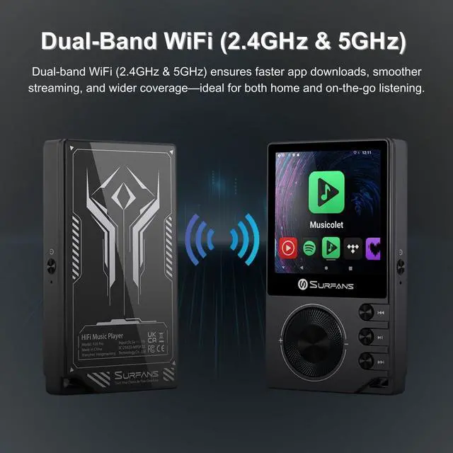 ^^ 3. [DSD512 & Powerful 4.4 mm Balanced Output (500mW) ] Supporting DSD512 and up to 192kHz/24-bit PCM, this Hi-Res digital audio player reveals every nuance in your music. The 4.4 mm balanced output delivers up to 500mW @32, easily driving full-size headphones, while the 3.5 mm output suits sensitive IEMs. ^^ 4. [Bluetooth LDAC & Dual-Band WiFi for Wireless Freedom] Enjoy high-quality wireless listening with Bluetooth LDAC for near-lossless sound. Dual-band WiFi ( 2.4G & 5G) ensures faster downloads, smoother streaming, and stable connectivityperfect for both home and portable use.