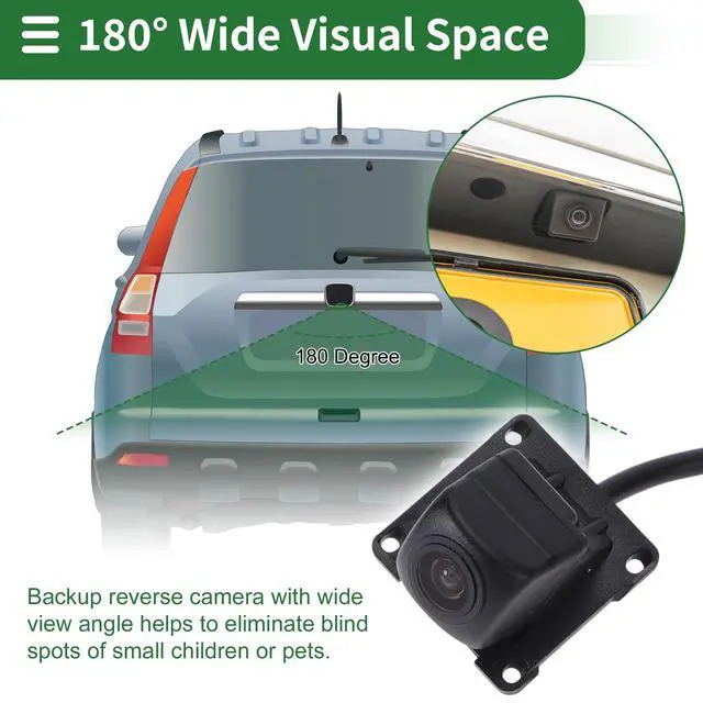^^ Feature: There're anti-fog HD glass and color CMOS image sensors inside this rear view camera so as to provide satisfactory color reproduction and a clear view for car owners. The visual space is 120-180 Degree. It's waterproof for all weather.