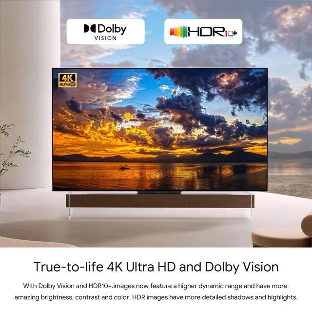 Dolby Vision & Dolby Atmos: With Dolby Vision and HDR10+, images now have a higher dynamic range, immersing you in stunning clarity and vivid colors on the screen, while Dolby Atmos (Dolby Atmos) immerses you in a full range of listening experiences, bringing the ultimate cinema experience into your living room. ^^ 4K Cinematic Experience - TV Box streams over 800, 000+ movies and TV episodes. The device is equipped with cutting-edge 4K HDR technology, capable of high-speed 4K processing and supporting playback at up to 60 frames per second. ^^ New