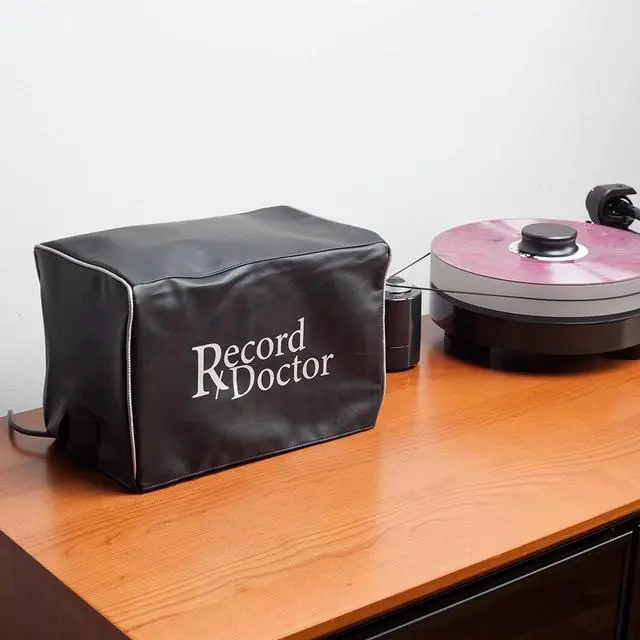 Protective cover for Record Doctor VI ^^ Soft black leatherette ^^ Attractive silver piping ^^ Wire management flap accommodates the Record Doctor V's AC power cable ^^ Helps protect your Record Doctor VI from airborne dust, dirt, and grime