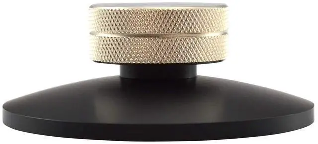 Dimensions: 1.1 high (when tightened on record spindle) x 3.1" diameter ^^ Helps reduce both stylus and record wear, extending the life of both, Beautifully designed and engineered ^^ Carbon structural steel collet clamps tightly to most turntable spindles ^^ Textured stainless steel knob allows for precise clamping pressure ^^