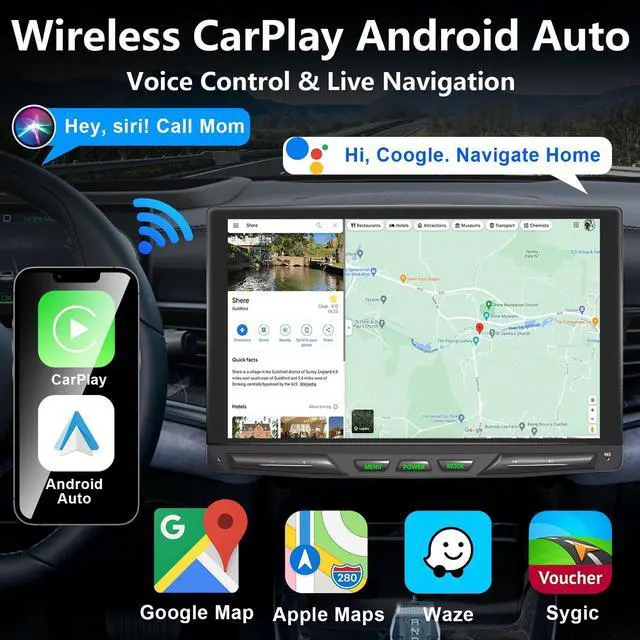 Apple Carplay & Android Auto Just connect your iPhone or Android Smartphone via wireless /wired (USB cable to use Carplay or Android Auto function. You can use this function to make voice control, play music, map navigation, make phone call, etc. ^^ Mirror Link &