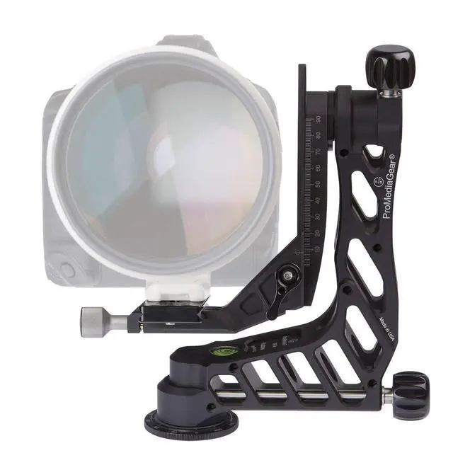 Load Capacity 50 lbs, Height 9.75, Weighs only 2.4 pounds ^^ Arca-Swiss type Lens Mount, 360 degree panning, with independent tilt mechanism ^^ Sealed Ball Bearings for Ultimate smoothness, Black Anodized Scratch Resistant Finish ^^ Made in USA, Includes a 6 inch lens mount plate.