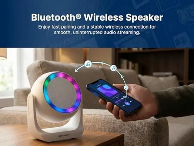 Elevate your everyday with a wireless speaker that blends style, sound, and smart design. Wall-mountable and space-saving, this versatile speaker fills your room with rich bass and vibrant RGB multi-color lighting for a dynamic atmosphereday or night. Enjoy seamless Bluetooth 5.4 connectivity, plus multiple playback options including USB, FM radio, TF card, and AUX-IN for ultimate flexibility. USB Type-C charging keeps you powered with ease, while the modern design adds a sleek touch to any space. Perfect for bedrooms, dorms, home offices, or as a thoughtful tech gift, its a sound experience that looks as good as it performs.