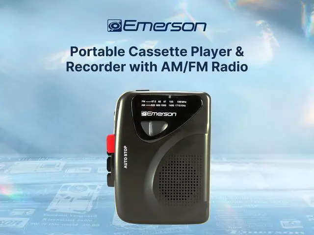 PORTABLE CASSETTE PLAYER & RECORDER FOR EASY PLAYBACK AND RECORDING -- The Emerson EPC-1000 allows you to play your favorite cassette tapes and record new audio directly onto a cassette. Capture music, voice notes, or radio broadcasts with ease using this versatile device. ^^ AM/FM RADIO FOR ON-DEMAND ENTERTAINMENT -- Enjoy your favorite radio stations with the built-in AM/FM tuner. The Emerson EPC-1000 gives you easy access to a wide variety of content, making it perfect for on-the-go listening or use at home. ^^ BUILT-IN SPEAKER FOR SHARED LISTENING -- Equipped with a built-in speaker, the EPC-1000 offers convenient, hands-free listening.