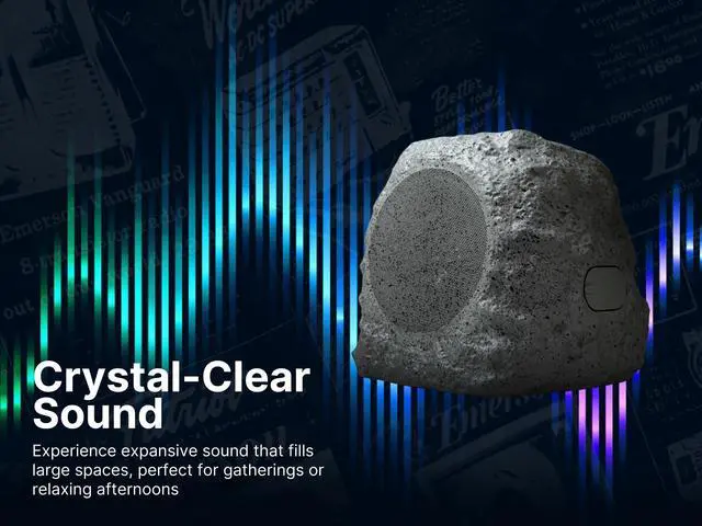 ^^ BUILT-IN RECHARGEABLE BATTERY FOR PORTABILITY -- The built-in rechargeable battery ensures hours of uninterrupted playback, giving you the freedom to place the speaker wherever you want, without the need for constant recharging. ^^ REALISTIC ROCK DESIGN TO BLEND WITH OUTDOOR SPACES -- Designed to look like a natural rock, this speaker blends seamlessly into your outdoor environment, providing high-quality sound without disrupting the aesthetic of your garden or patio. ^^ POWERFUL SOUND PERFORMANCE FOR OUTDOOR ENTERTAINMENT -- The ERS-1001 delivers crisp, powerful audio that can fill any outdoor space, making it ideal for large gatherings, parties, or simply relaxing outdoors with your favorite tunes.