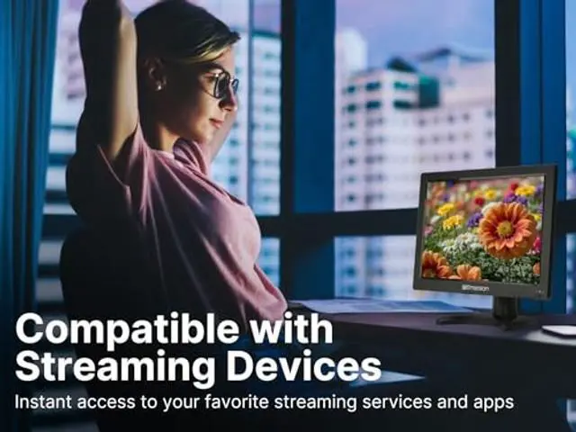 The built-in rechargeable battery offers hours of entertainment on a single charge, making it perfect for travel, camping, or emergencies. ^^ INCLUDES DC CAR ADAPTER FOR EASY CHARGING ON-THE-GO -- Stay powered up while on the road with the included DC car adapter. Easily recharge your TV in your vehicle so you never miss a moment of your favorite shows or movies. ^^ MULTIPLE INPUT OPTIONS FOR VERSATILE VIEWING -- Connect your devices with the TV's multiple input options, including HDMI and USB ports. Play your favorite media files, connect a streaming device, or watch live TV with an external antenna.