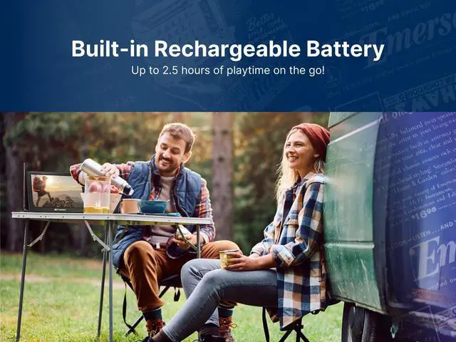ENJOY ENTERTAINMENT ON-THE-GO WITH THE EMERSON 13.3" PORTABLE DIGITAL TV -- Stay connected to your favorite shows and movies wherever you are with the Emerson 13.3" Portable Digital TV. Perfect for travel, outdoor activities, or as a convenient secondary TV in your home. ^^ 13.3" HD DISPLAY FOR CLEAR, VIBRANT PICTURE QUALITY -- Watch your favorite content in sharp, detailed quality on the 13.3" HD screen. Whether indoors or outdoors, enjoy a clear and bright viewing experience. ^^ BUILT-IN RECHARGEABLE BATTERY FOR PORTABLE CONVENIENCE -- Take your TV anywhere without worrying about finding a power source.