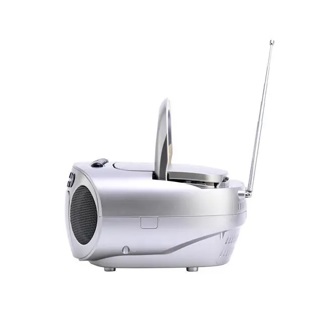 Get ready to rock out with the Emerson EPB-3003 all-in-one BOOMBOX! This device plays and records cassette tapes, a top-loading CD player with 20-track programmable memory, and an AM/FM stereo radio with an LED display. It also has play/pause, skip/search, and repeat functions, dynamic high-performance speakers, a telescopic antenna, and an aux-in jack.