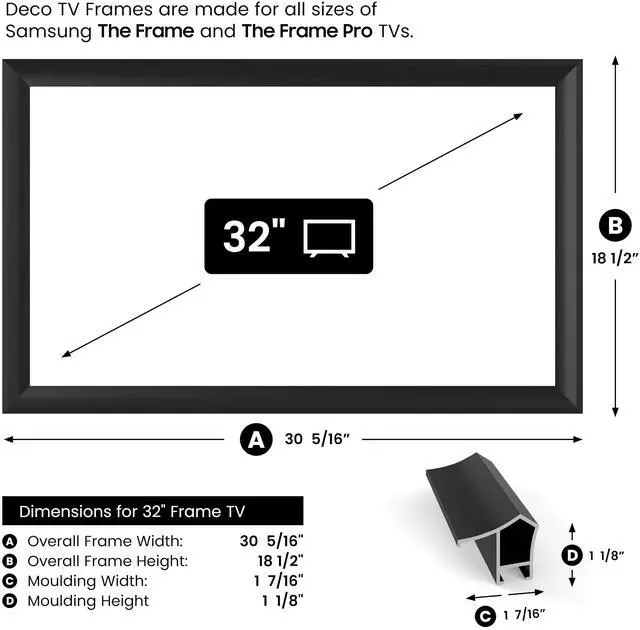 • Important Note: Deco TV Frames are made exclusively for Samsung The Frame TV and are not compatible with any other TV models. They serve as an elegant replacement for your Samsung Bezel.