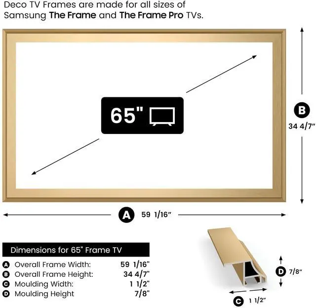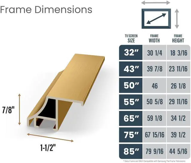 • Important Note: Deco TV Frames are made exclusively for Samsung The Frame TV and are not compatible with any other TV models. They serve as an elegant replacement for your Samsung Bezel.
