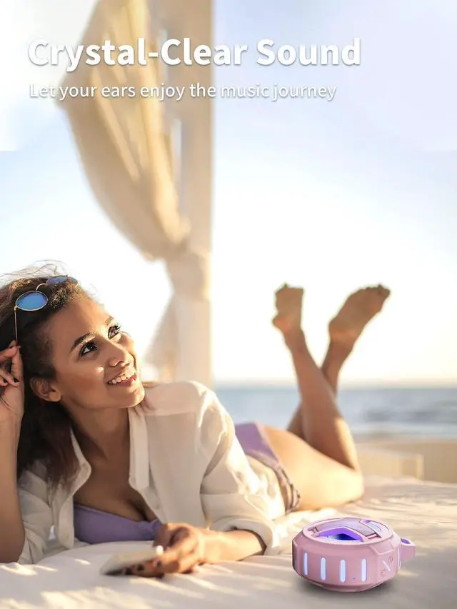 EBODA Bluetooth Shower Speaker, IP67 Waterproof Portable Wireless Small Speakers, Floating, 24H Playtime for Home, Beach, Pool, Kayak, Hiking, Boat Accessories, Gifts for Women, Girls - Pink