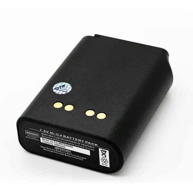 High-Performance NiCd Power 7.2V 1800mAh rechargeable NiCd battery designed for reliable, long-lasting performance in demanding two-way radio applications. ^^ Compatible with Motorola Radios Works with Motorola Saber I, Saber II, Saber III, Astro, MX1000, MX2000, MX3000, and MX3010 series handheld radios. ^^ OEM Battery Replacement Replaces Motorola part numbers: NTN4593, NTN4594, NTN4595, NTN4595A, NTN4595B, NTN4595DR, NTN4595M, and NTN8251AR. ^^ Built for Professional Use Precision-engineered for rugged field conditions, ideal for emergency services, security, construction, and commercial radio systems. ^^ Charger-Compatible and Certified Safe Supports Motorola OEM NiCd desktop chargers; includes MSDS-certified cells and a 1-Year limited warranty for peace of mind.
