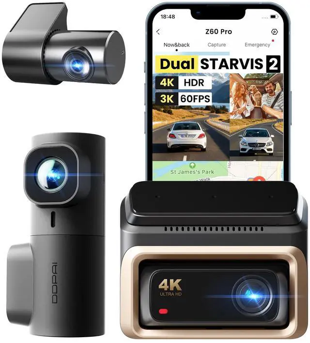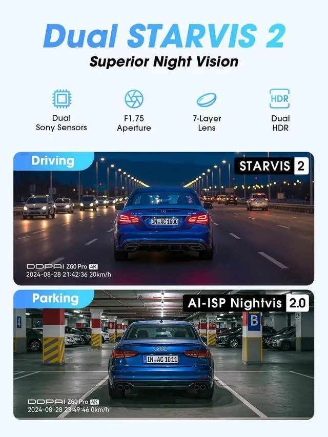 (Note: When the front camera is in 60fps mode, HDR is NOT supported) ^^ Dual HDR & Superior Night Vision Dash Cam: Powered by STARVIS 2 IMX678 + IMX662 sensors, the Z60 Pro link dash camera for cars combines 4K HDR for the front, 1080P HDR for the rear, delivering unmatched clarity and detail on both channels in every drive. Enhanced by DDPA