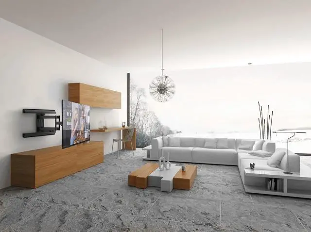 Fits most flat panel TVs from 39" to 80", Supports TVs up to 125 lb. (57 kg), Accommodates VESA sizes from 200x100 to 700x400 ^^ Extends up to 24 ( 61.3 cm) from the wall, sits 2.5 ( 6.3 cm) when fully retracted and accommodates 24" stud spacing ^^ Accessible tilt mechanism provides +12 Degree to -3 Degree of tilt, 90 Degree of swivel in either direction, depending on screen size. ^^ 9 ( 22.8 cm) of horizontal offset and adjustable horizontal leveling, cULus Certified ^^ Installation manual and all mounting hardware for wood studs and concrete installation is included, Ten year manufacturer's warranty