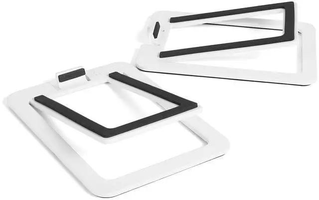 IMPROVED SOUND - S2 speakers stands let you get the most out of your speakers by tilting them 16 toward your ears, ensuring you never miss out on those higher frequencies. Foam padding on the top and bottom of each stand also helps to maintain stability and reduce undesirable resonance. ^^ MINIMALISTIC DESIGN - Using as little material as necessary, S2s low-profile design keeps your desktop looking clean. ^^ SOLID METAL CONSTRUCTION - Premium build quality and ultra-stable design to keep speakers in place. ^^ THE PERFECT COMPANION - S2 stands measure 3.9 '' wide by 5.3 '' deep and are capable of holding 6 lb each.