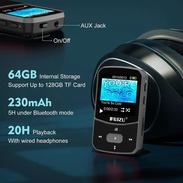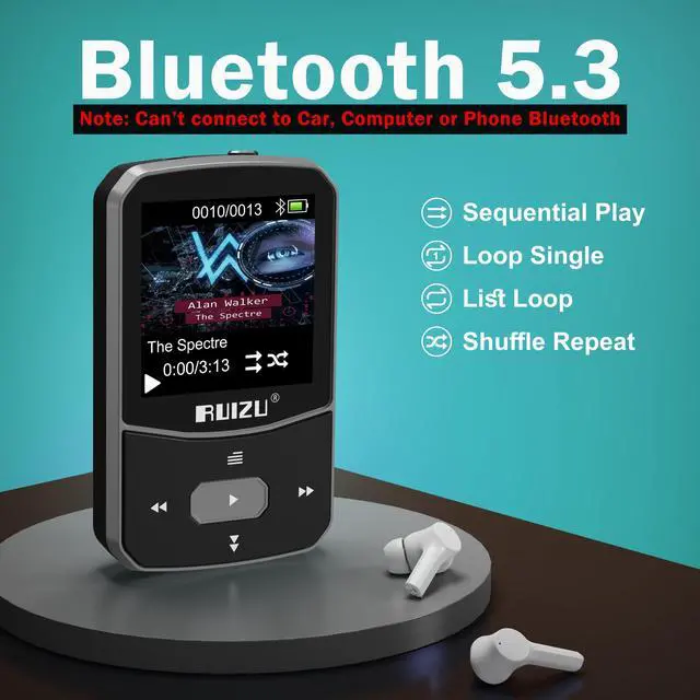 [Portable MP3 Player with Bluetooth 5.3 ] Seamless connect to Bluetooth headphones or speakers for a tangle-free listening experience. Enjoy multiple playback modes. Sequential play for album enthusiasts, playlist loop for continuous enjoyment, single-track repeat for your favorite hits, and shuffle mode for an unpredictable mix. Whether for workouts, commutes, or leisure, this small MP3 player with Bluetooth ensures your music is always at your fingertips. ^^ [Large Memory 64GB + 128GB, Long Battery Life, 1.5H Fast Charging] 64GB internal memory & support up to 128GB micro SD card expansion, this mini MP3 player with Bluetooth offers ample space for songs & audiobooks.