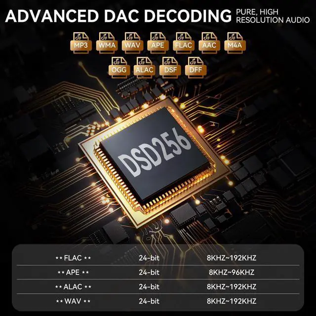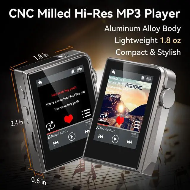 [CNC-Milled Hi-Res Music Player] Machined from CNC aluminum alloy with a refined metallic finish, this HiFi lossless MP3 player offers durability & elegance. Compact at 2.361. 810.55 inches & 1.76 oz, the HiFi MP3 Player is ideal for relaxing with your favorite music ^^ [Pure Wired Listening ONLY No Bluetooth, No Speaker] Designed exclusively for wired headphoneszero latency, no interference, and uncompressed sound. The Hifi digital audio player supports MP3, WAV, FLAC, AIFF, APE, OGG, and native DSD256, delivering lifelike clarity at home, commuting, or on long travels ^^ [Flexible Playback Control] Customizable EQ, 4 favorites or folder playlists, multiple