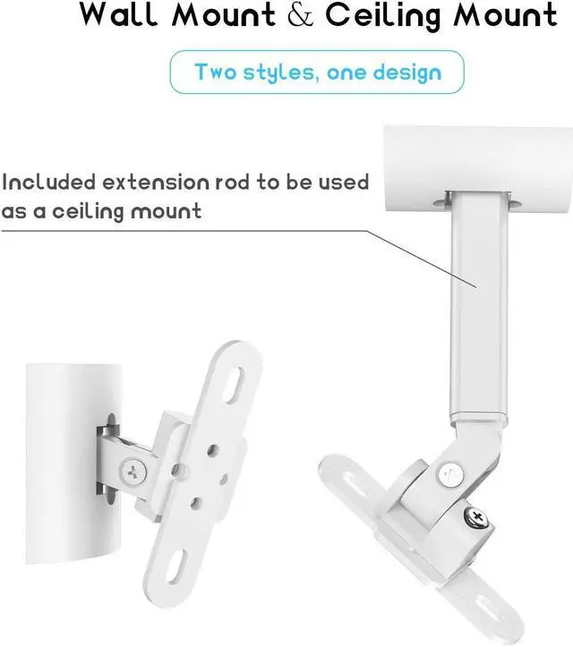 * 2 In 1 Design: This mount not only can used as a wall mount but also can used as a ceiling mount at any degree. It can install to indoor or outdoor as the same as the speaker can indoor or outdoor.