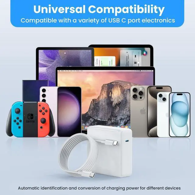 [(120W USB C Charger Wide Compatibility)] Our USB C charger intelligently output port can automatic identification and conversion of charging power, provide higher charging performance. Work with USB-C 100W, 96W, 87W, 70W, 67W, 61W, 30W, 29W PD model, flawlessly compatible with MacBook Pro 16 15 14 13 inch 2023, 2022, 2021, 2020, 2019, 2018, 2017, 2016, MacBook Air, iPad Pro, Samsung / Google Chromebook, Microsoft Surface, Dell, Lenovo, HP, iPhone 15 series and other USB-C port laptops/smartphones and more.