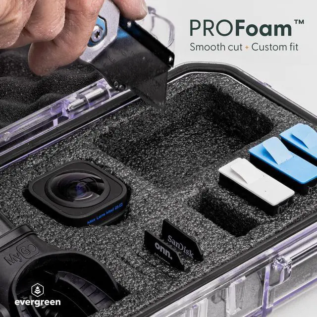 Evergreen ToughBox Tech Organizer For Camera, Cables, Hard Drives, Compatible with GoPro etc. (Large, PROFoam, Black)