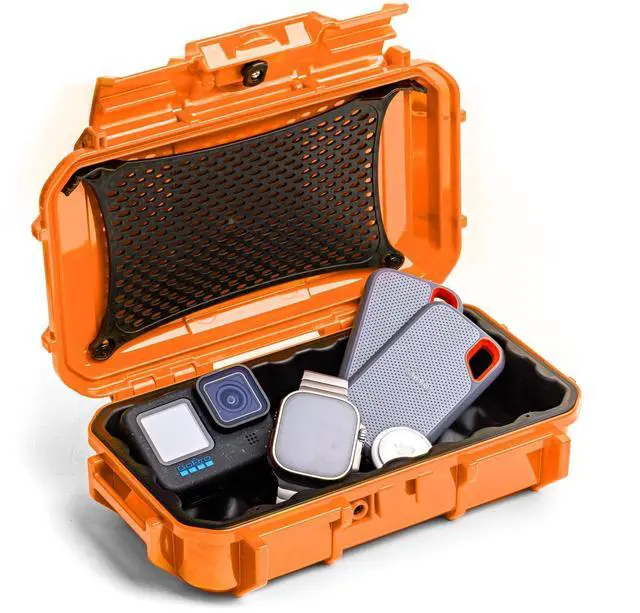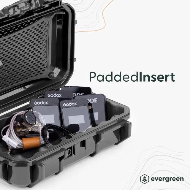The Evergreen Dry Box (Medium) Our mid-size compact micro-case is designed to be the perfect companion for securely transporting smaller tech on the go. The solid 100% polycarbonate construction is precision designed, and tested to last. This compact case ensures gear stays secure and accessible wherever your passion takes you. ^^ Secure Storage for Valuable Gear This Dry Box is our flagship and top-selling case. It is the medium size in our lineup, ideal for secure storage of smaller items such as phones, keys, action cameras (GoPro, Insta360), Hard Drives, SSDs, Airtags, keys, cables, chargers, etc.