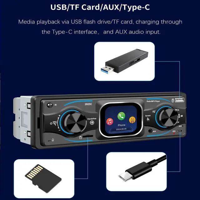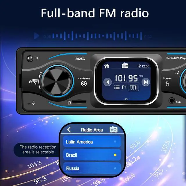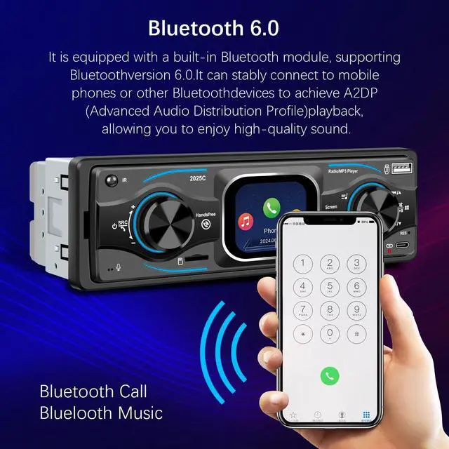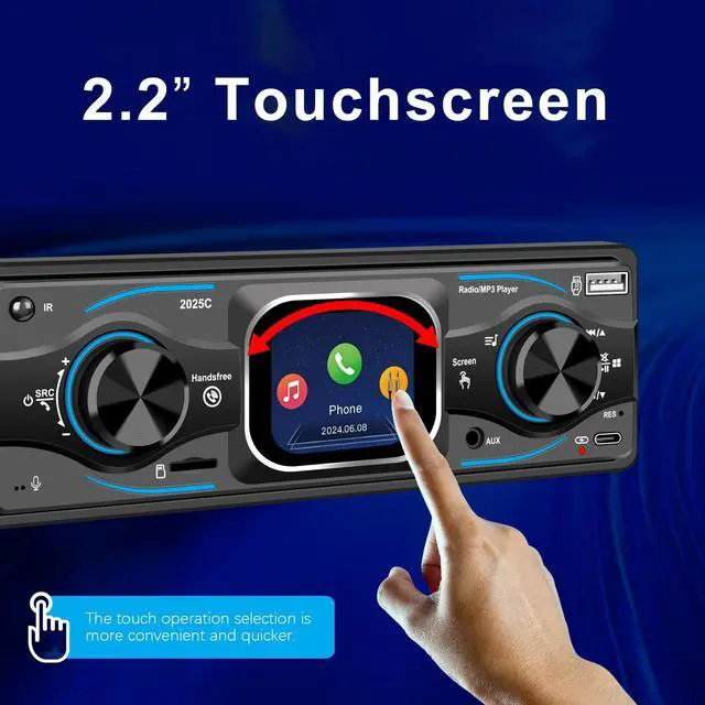 Single din Car Radio with TouchscreenThe 2.2 touchscreen makes it more intuitive for you to operate the radio. ^^ Build-in BluetoothHands-free Bluetooth car audio, easy to connect to mobile phones, support hands-free calls. Making phone calls is easier and ensures safe driving. ^^ FM RadioHigh-quality digital stereo FM radio, can fully automatic, semi-automatic and accurate channel search.