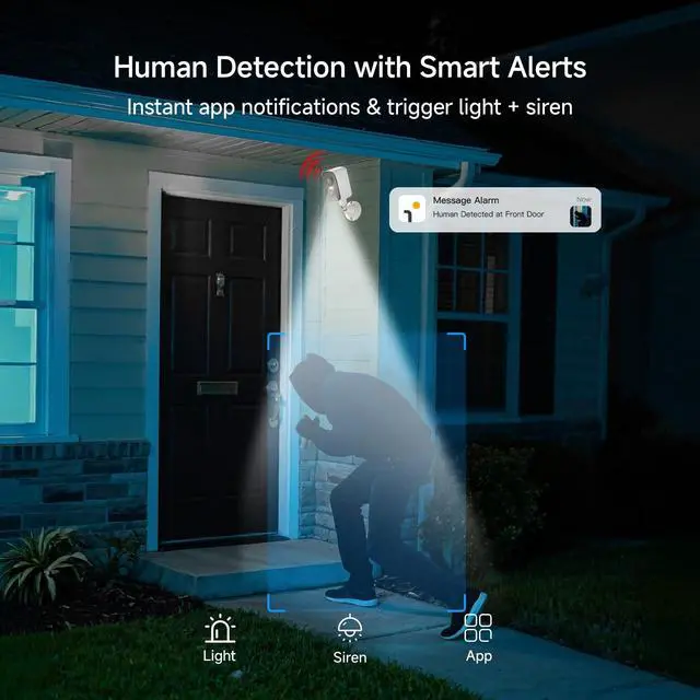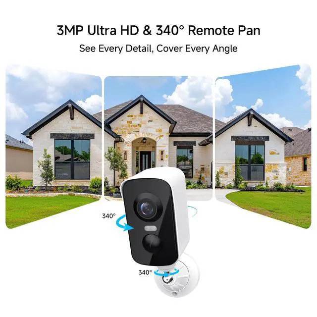 Ultra HD: Laxihub wireless security camera outdoor supports 340 pan for wide coverage. Paired with superior 3-Megapixel (2304x1296) resolution (Sharper than 1080P), it helps you monitor yards, front doors, or garages without blind spotsideal for home security ^^