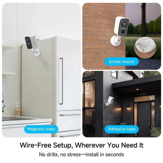 Magnetic Mount & Easy Setup: The magnetic base attaches securely to metal surfaces, or use the included double-sided tape or screws for other areas. Install your camera in minutesgarage, entryway, or nursery ^^ 340 Pan View & 3MP