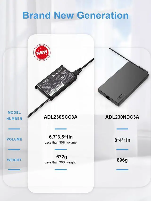 [(Small But Powerful )] The 2023 brand new 230W lenovo legion charger, 30% much smaller as well as lighter than the original Model ADL230NDC3A in its volume & weight, which is faster in its charging speed.(Please note. Cannot be used to replace 300W chargers.),Output Max - 20V 11.5A 230W (compatible with 20V 8.5A 170W) Input Volt Range - 100-240V