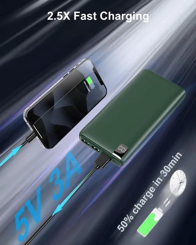 4 Outputs & 2.5X Fast Charge: It can charge 4 devices simultaneously and you can share it with your family and friends. 3.0A fast charging speed ensures 2.5 times faster than ordinary power bank, greatly shortens charging time for your phones.