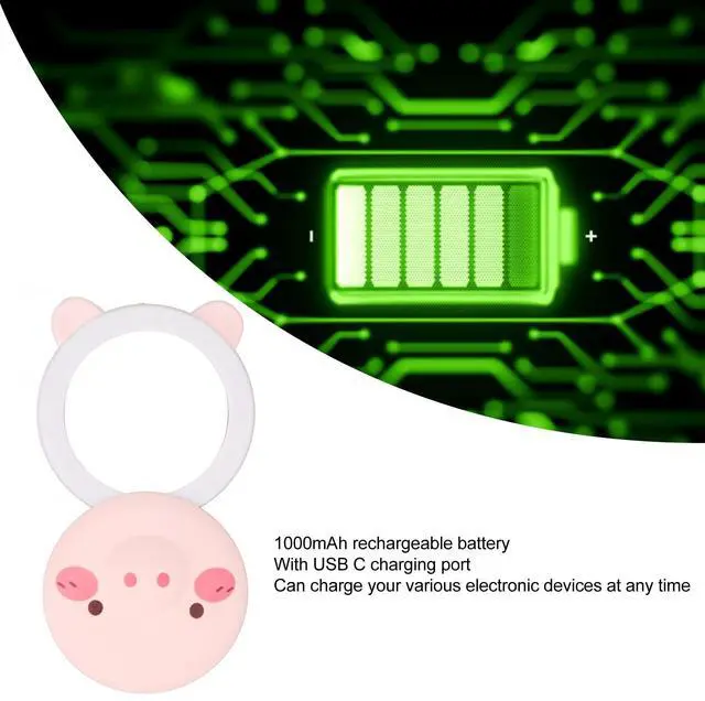 Cute Piggy with Power Bank Function, USB with Makeup Mirror and Light, Portable Rechargeable Mini Pocket