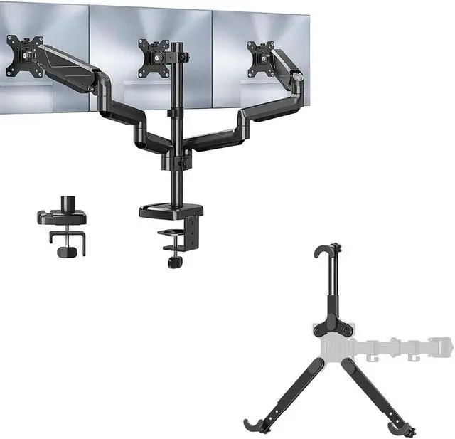 Universal Compatibility and Premium Heavy-Duty Base - MOUNT PRO monitor mount for 3 monitors fits for 17"-27" computer monitors with VESA 75x75mm and 100x100mm.Each arm supports 4.4 to 19.8lbs.Upgraded sturdy base provide more stability, strong enough to hold three monitor displays.