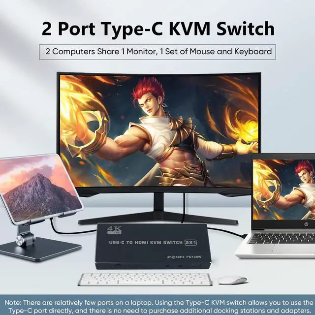 3) The KVM Switch does not support PD charging sharing, you need to connect both host devices' own chargers to the PD charging port of the KVM accordingly.
