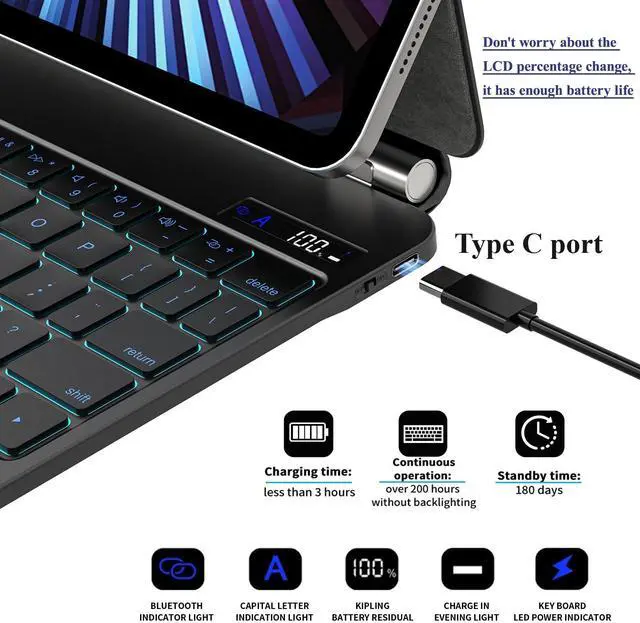 7-Color Backlight & LCD Display: Customize RGB backlight (3 brightness levels + breathing modes) for any environment. Built-in LCD clearly shows battery status, caps lock, and Bluetooth connection.Long-Lasting: >200 mins typing time(Backlight Off),1500+ hrs standby.