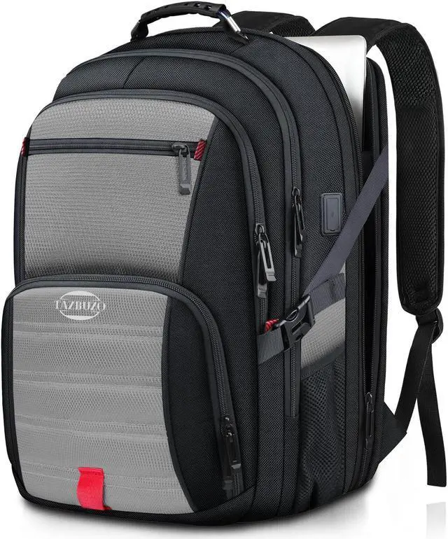 tazbuzo 18.4 Inch Extra Large Travel Backpack, TSA Laptop Backpack with USB Port, 55L Water Resistant Carry on College School Computer Backpack Men Women, Grey