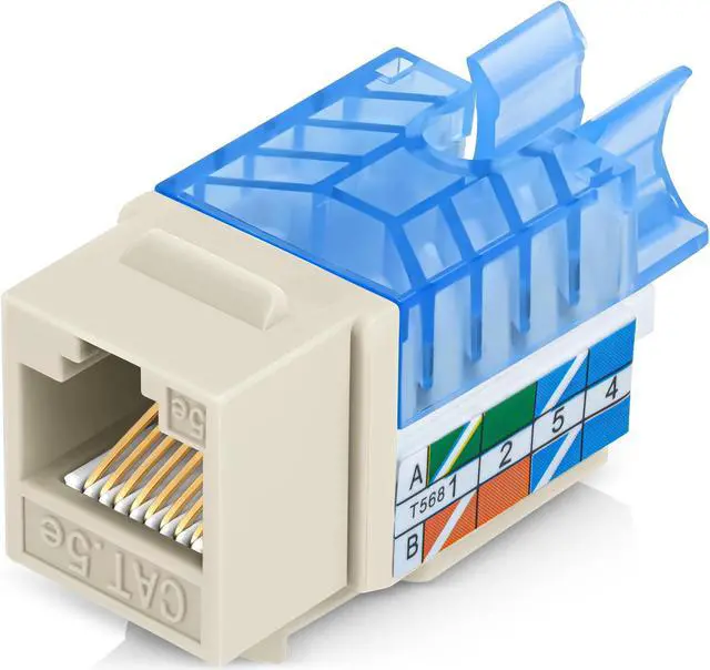 Slim Profile Design - Can be used with a patch panel, wall plate, or surface mount box with standard or slim keystone blank openings. Cat 5e keystone jack accepts 23 and 24 AWG unShielded twisted pair (UTP) cable. compatible with Leviton QuickPort System and slim Cat6 Decora style wall plates