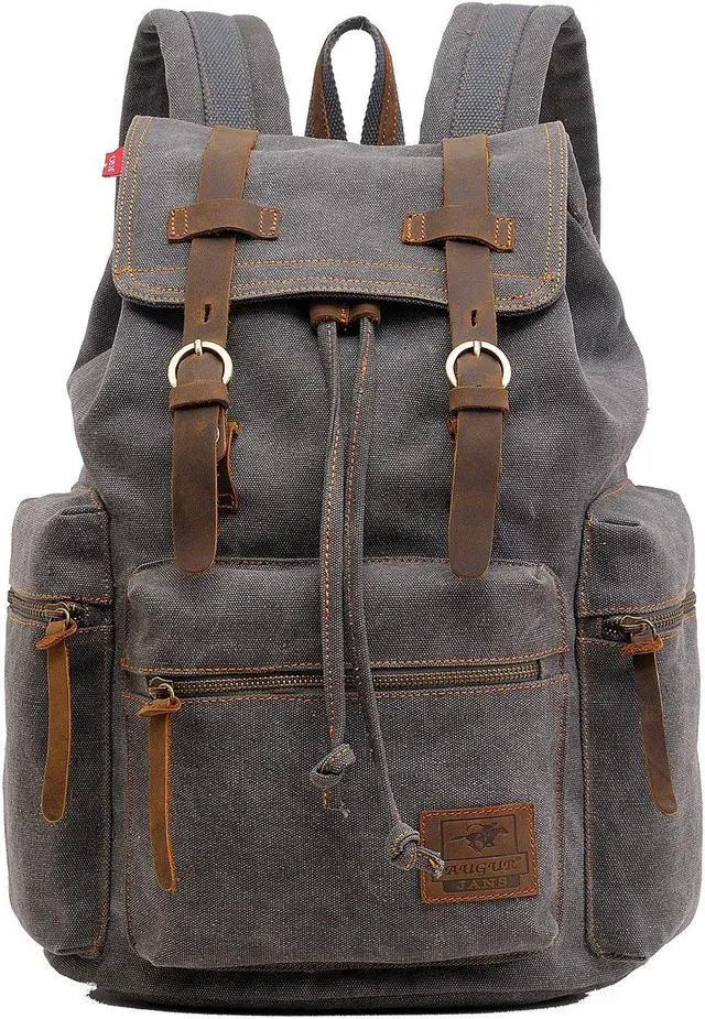 AUGUR High Capacity Canvas Vintage Backpack - for School College Hiking Travel 12-17" Laptop