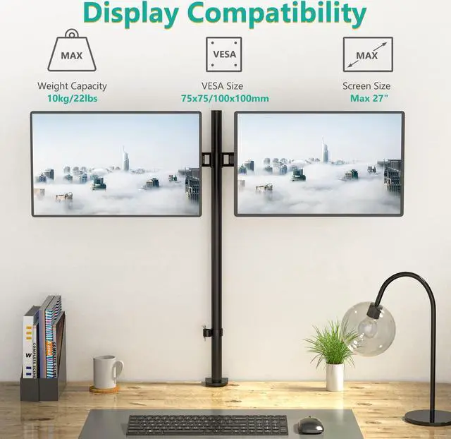 Package Include: WALI Extra Tall Dual Monitor Mount (Black) x 1 Mounting Hardware Kit x 1 User Manual x 1