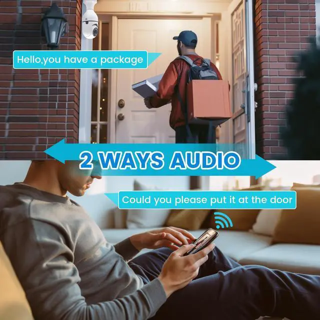 Two-Way Audio & Alarm Siren - Light bulb security cameras allow you to chat with family or visitors on your phone. You can set an audible alarm to sound a loud alarm when a moving object is detected; Loudspeakers and spot light can scare away thieves.
