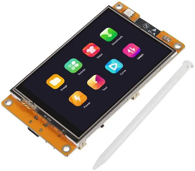 The display resolution is 240x320, resistive touch, includes LCD display screen, backlight control circuit, touch screen control circuit, speaker drive circuit, photosensitive circuit and RGB-LED control circuit
